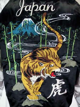メンズ/紳士★刺しゅう入りスカジャン/和柄刺繍/薄中綿入ジャンバー/虎刺繍/寅刺繍